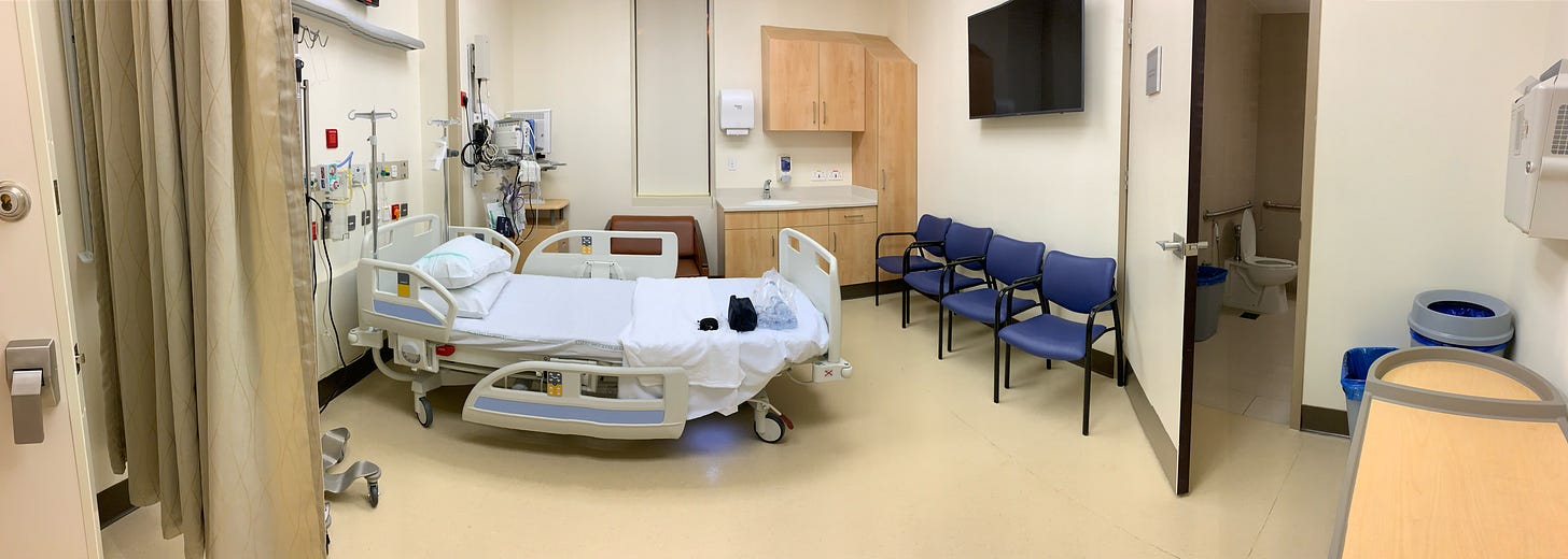 وبعد كم ساعة، نقلوني الى غرفة أخرى أكثر هدوء وخصوصية، وتابعة أيضاً لقسم الطوارئ.