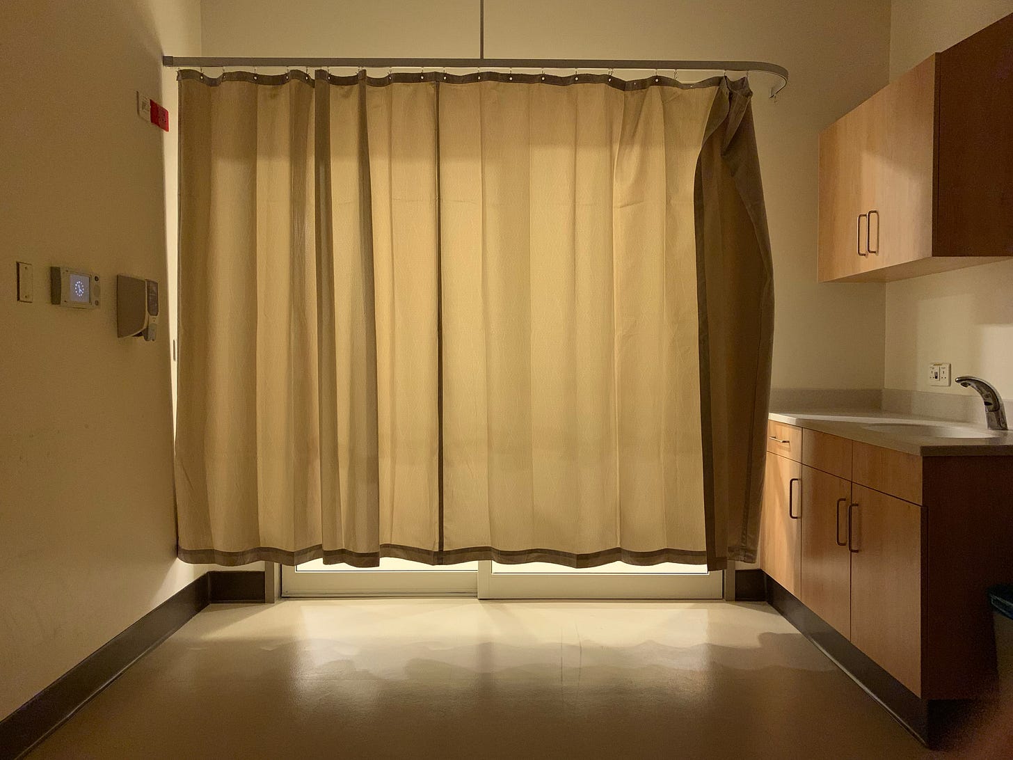 بعد التشخيص، أدخلوني الى غرفة مؤقتة في قسم الطوارئ لمراقبة حالتي، وطلبوا مني محاولة النوم والراحة بعد المشقة التي واجهها جسدي. لكن الأصوات الكثيفة من الناس والأجهزة، لا تسمح لأحد بمحاولة النوم… تمكنت من متابعة أصوات الأجهزة في غرفتي، وكتمت أصواتها (mute).