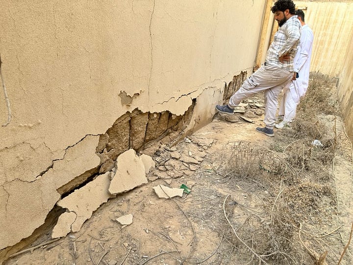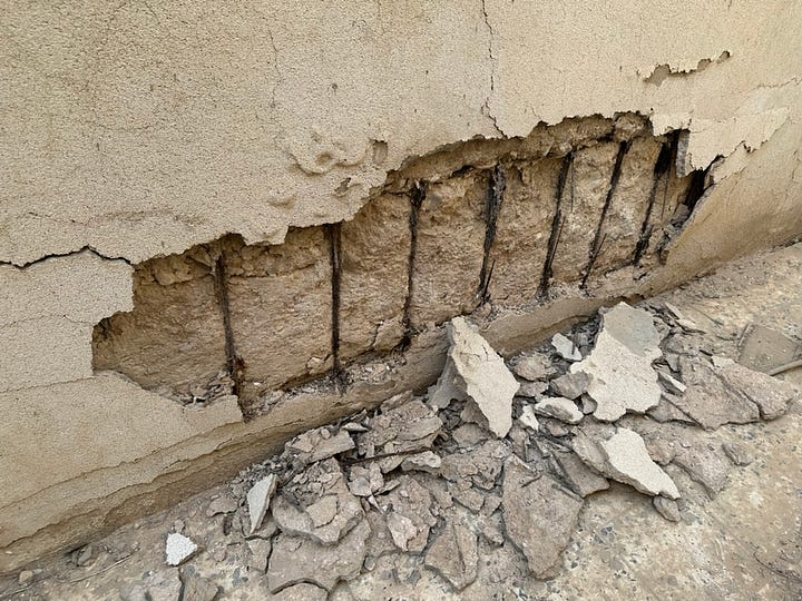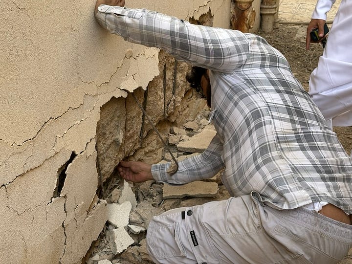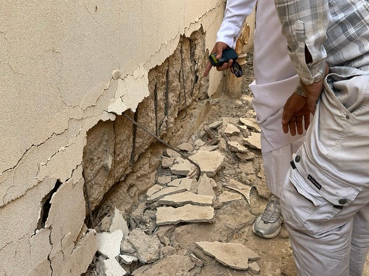 زار موقع البيت أربع مكاتب هندسية، وأجمعوا علي مناطق التلفيات (الميدة كاملة، وبعض الأسقف). أسعار الترميم الشاملة كانت من ٧٠٠ ألف الى ٩٠٠ ألف، والرخيص لم يحز على ثقتنا (مريب). طبعاً مبلغ كهذا يعني أننا اقتربنا من تكاليف البناء الجديد، وعلينا التفكير والتخطيط والتنفيذ بشكل مختلف تماماً.