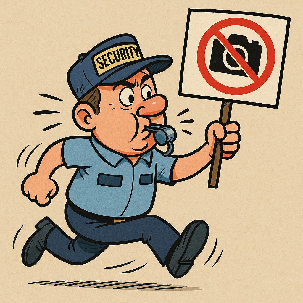 وجميع التصاريح المطلوبة مبهمة، لا أحد يعرف من أين وكيفية الحصول عليها. حاولت كثيرا إقناع موظفين السيكيورتي، أمنعوا التصرف ولا تمنعوا الأداة. إذا النية تصوير تجاري أو صحفي اطلبوا تصريح، والهاوي شجعوه، بغض النظر عن نوع الأداة إذا كانت كاميرا مستقلة أو جوال.