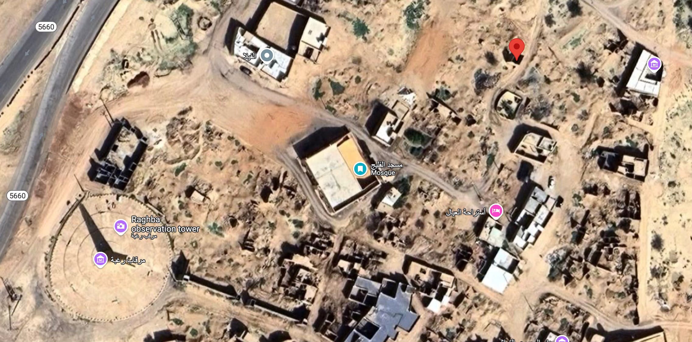 العلامة في الخريطة التالية تبيّن البيت في منطقة الرغبة.
