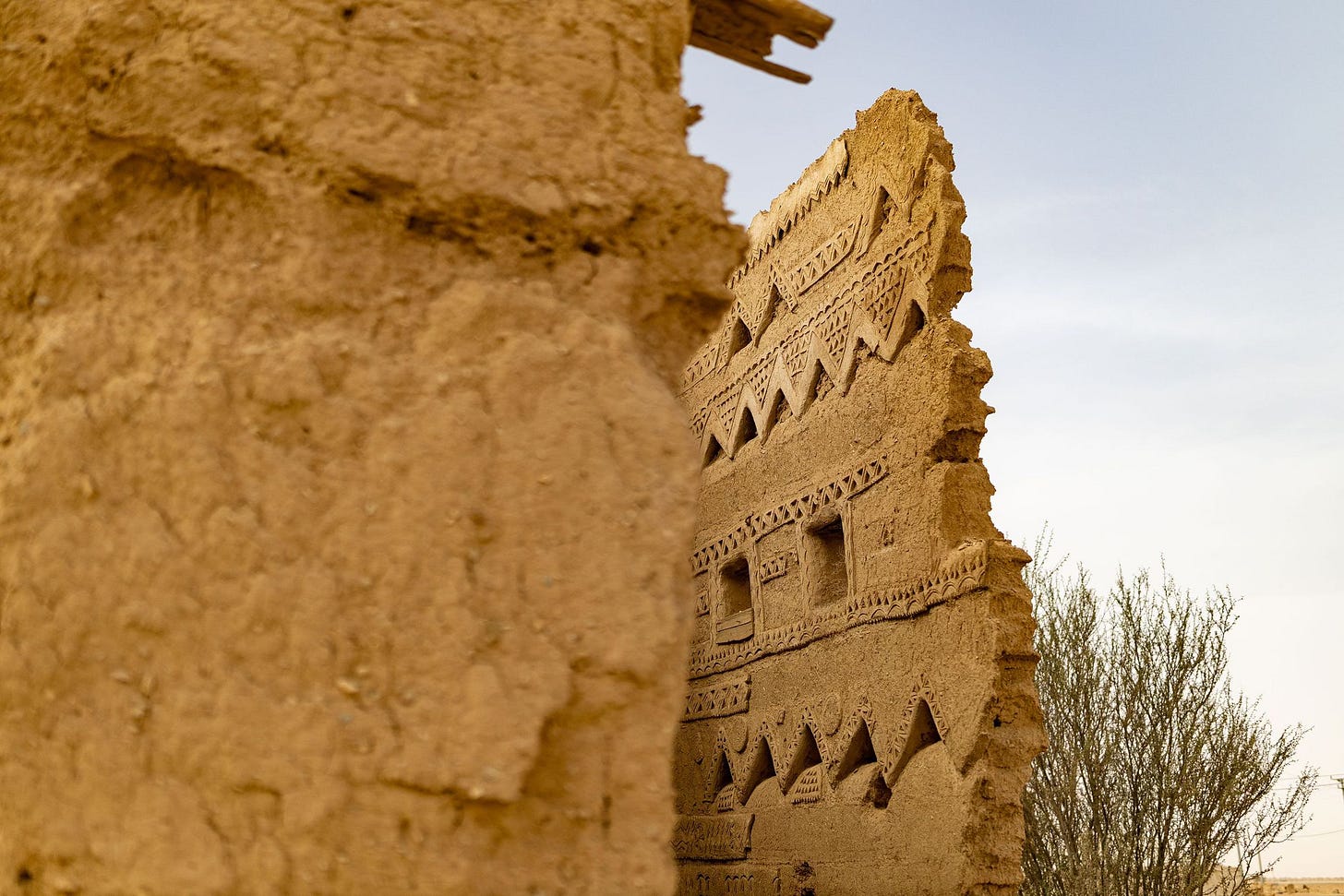 أبهرتني الزخارف في هذا البيت القديم، وقلت لازم أشوف وأصور هالبيت.. عاد الجو مغبر هالأيام، لكن مشوار ساعة ونص (ذهاب) أول الصبح كان مقبول.