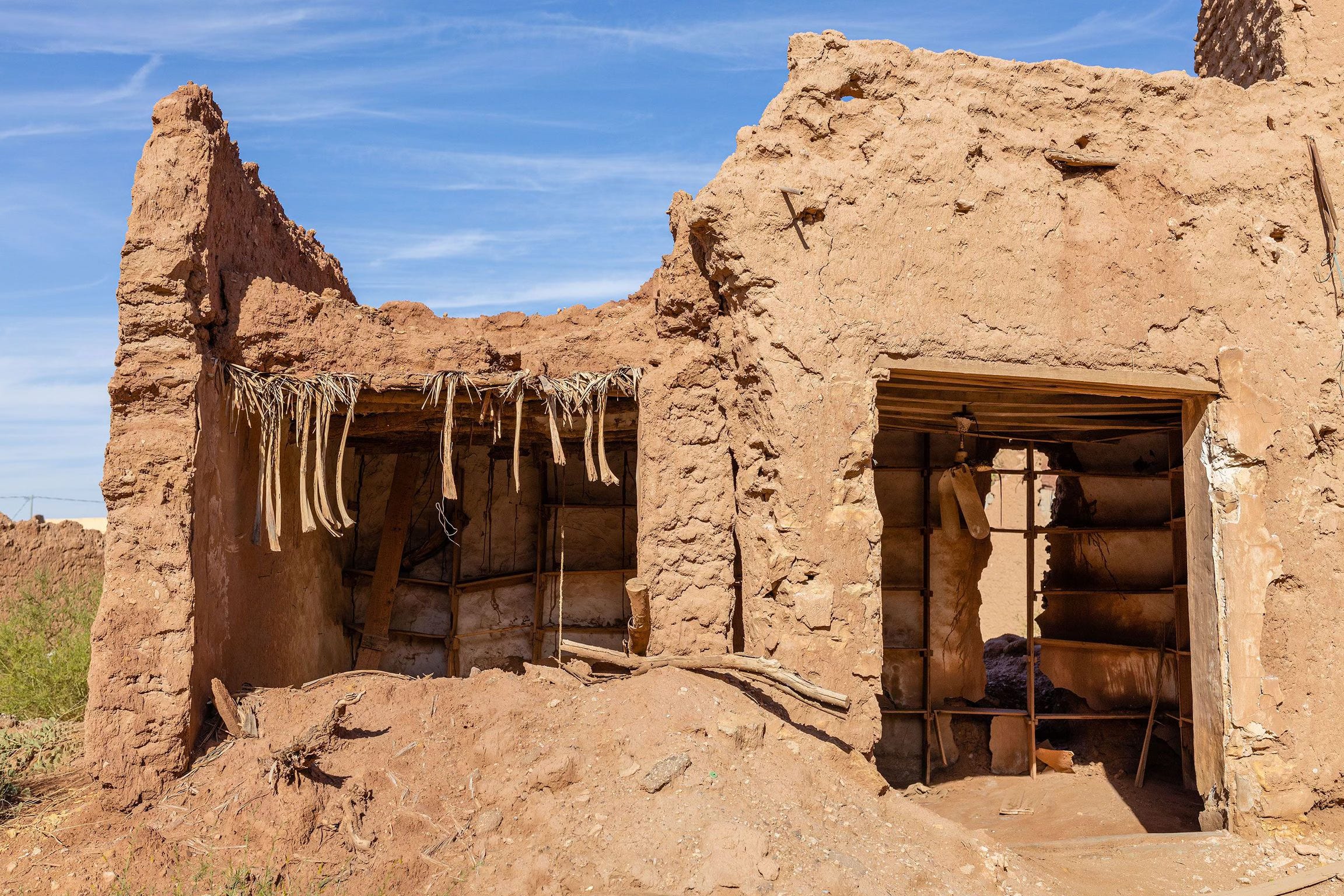 توجهت بعدها إلى قصر الربض. الطريق المعبد يصل قريباً من موقع القصر، والطريق الترابي متماسك يمكن استخدامه بسيارة عادية (بدون دفع رباعي). القصر متهالك من الأمطار وعوامل التجوية والتعرية. لم أرى مدخل ممكن استخدامه، ولا أدري إذا ما بداخله غير متهالك أيضاً. بعض أجزاء السور متداعية ومغرية للتسلق، لكن لا أنصح بذلك، فأهم شي السلامة.