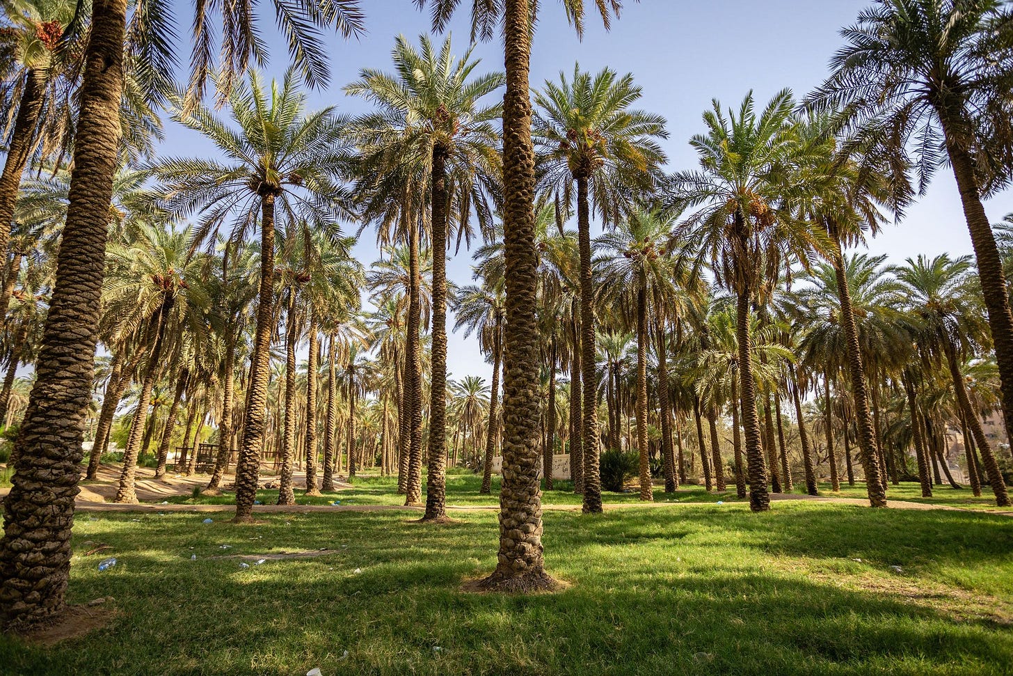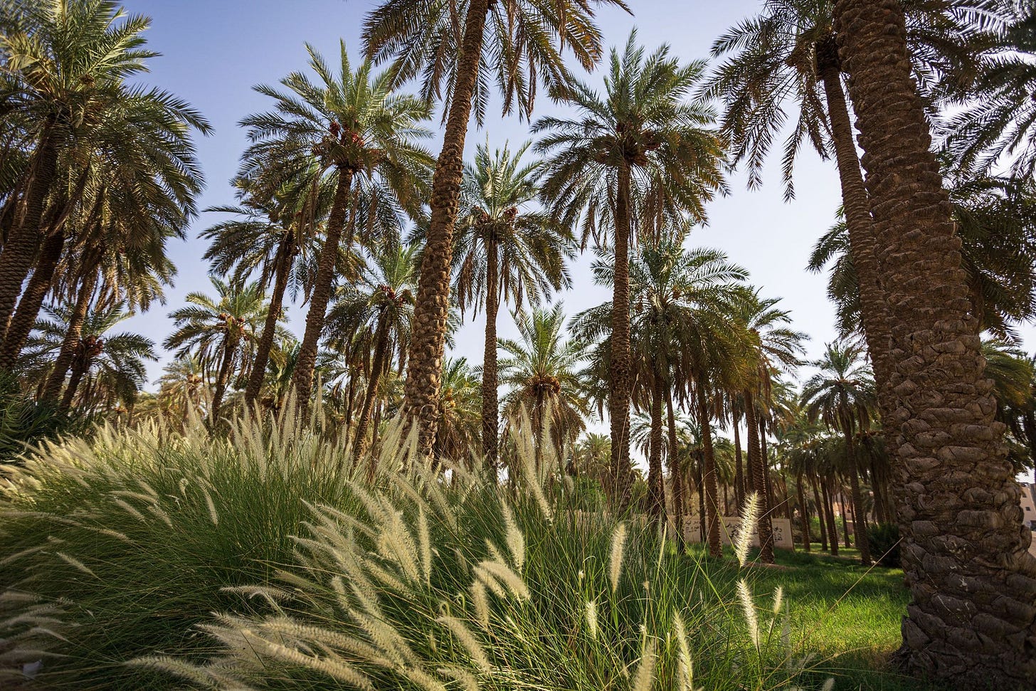 وجدت مدخل مغلق لواحة البديعة، ويبدو أنه مدخل لحديقة عامة. لكن بعد عدة أمتار، تبدأ منطقة مفتوحة من النخيل والحشائش.. لاحظت وجود بعض الكلاب، ولكن أرجح أنها من المزارع المجاورة أكثر من كونها سائبة.